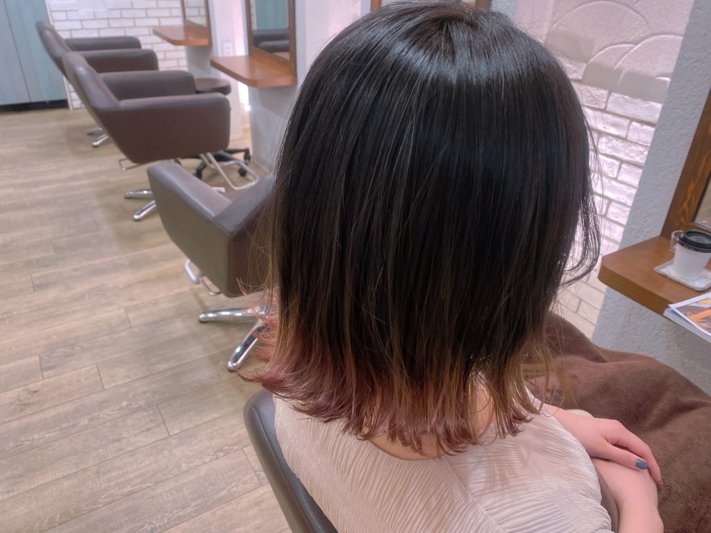 毛先をブリーチし、オンカラーでほんのりピンクに💓