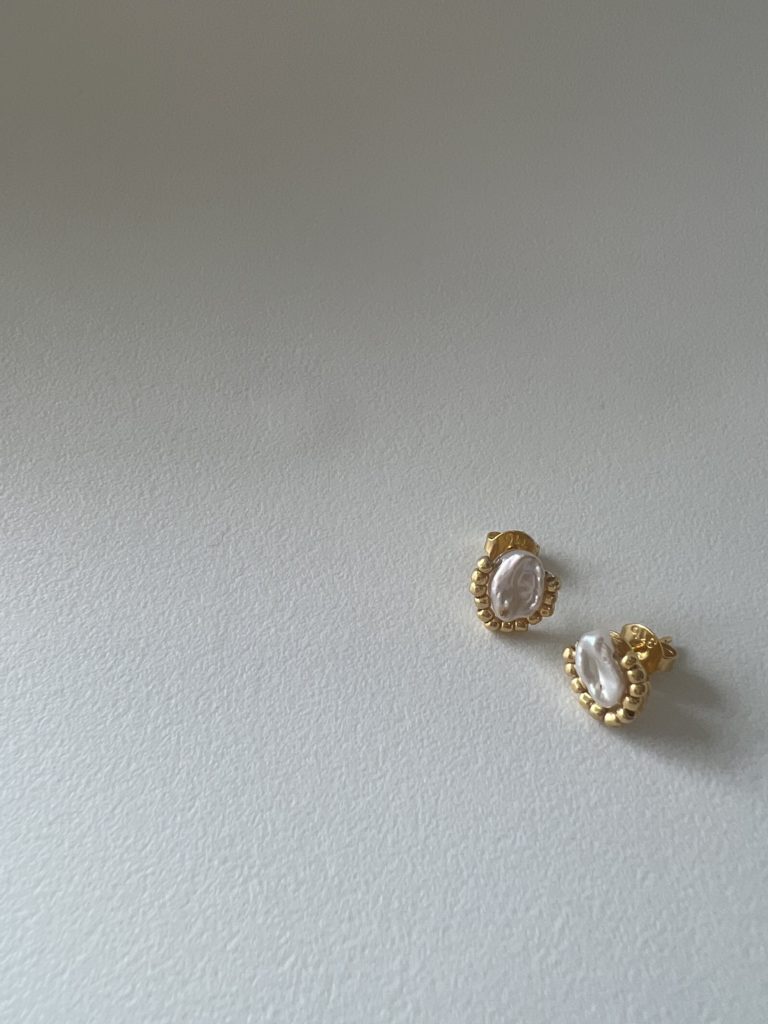 ゴールドのビーズをぐるっと囲まず、上だけちょっと空いてて抜け感があります。
