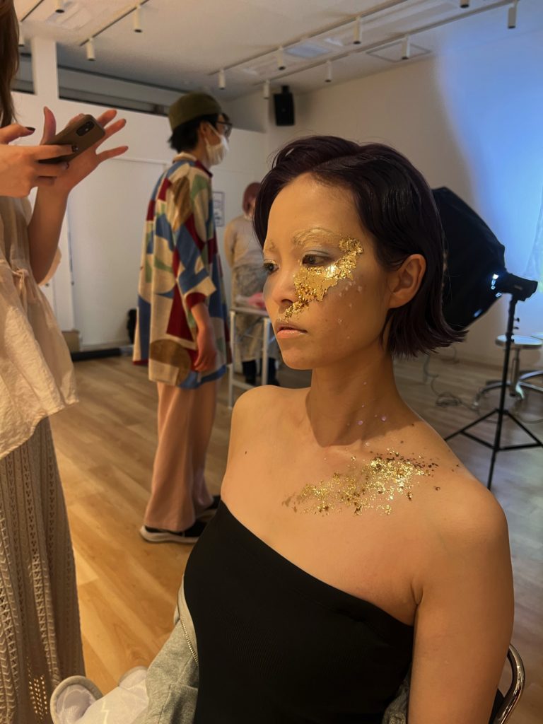 お顔には金箔やしずくを貼り付け、眉毛も消したりして人間っぽさをなくしています。
