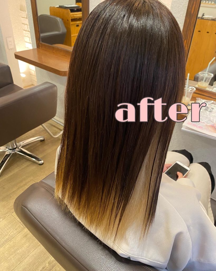 インナーカラーと毛先のダメージが強く、ドライヤーで乾かすだけでは広がりやすい髪も💫
