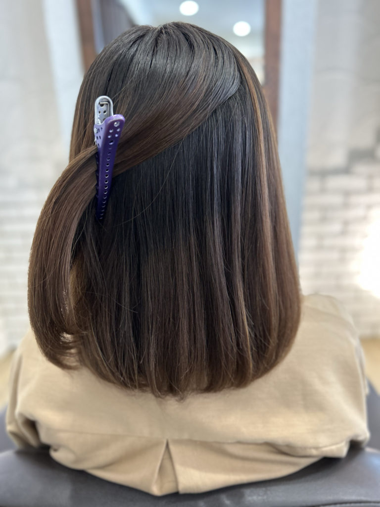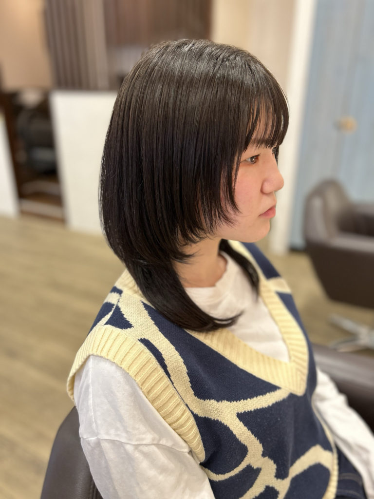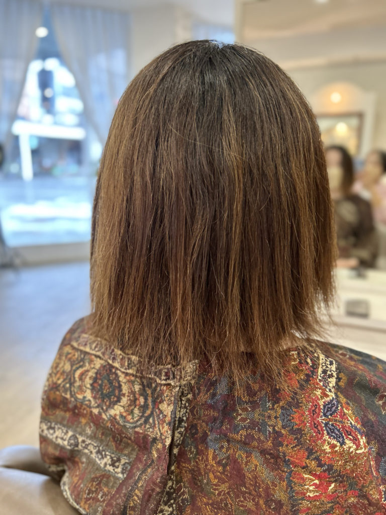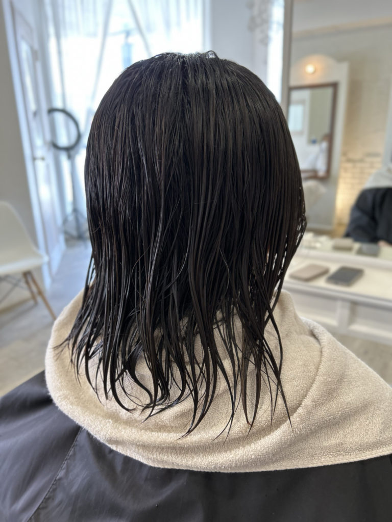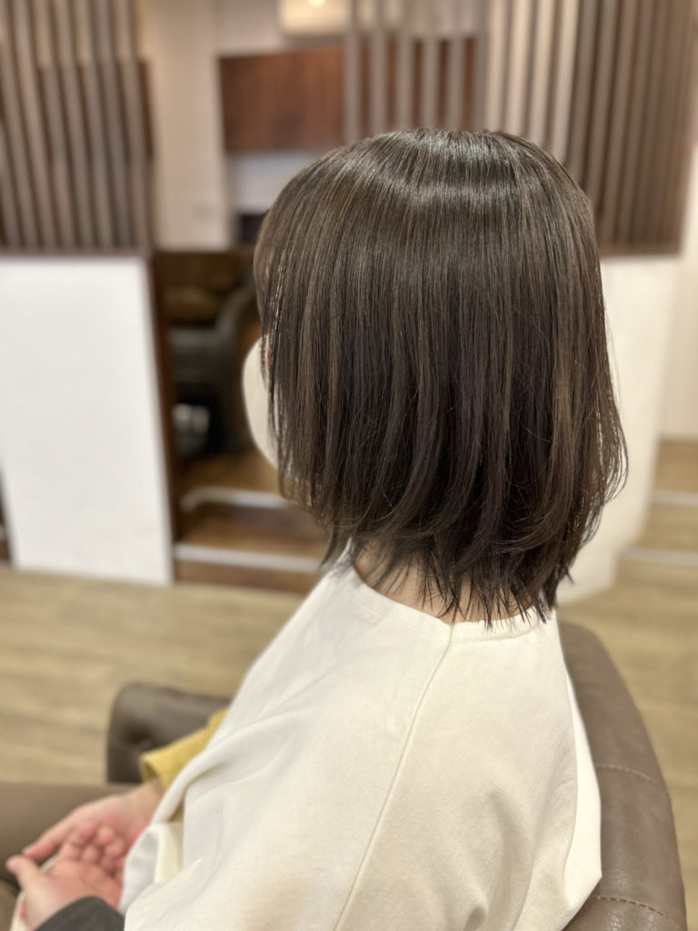 柔らかい質感に仕上げつつ、自然なボリューム感になりました。ツンとする毛先の質感にはなりません。
