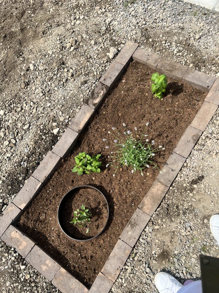 初心者なので、ほったらかしても勝手に増えるハーブのお庭にしてみました。