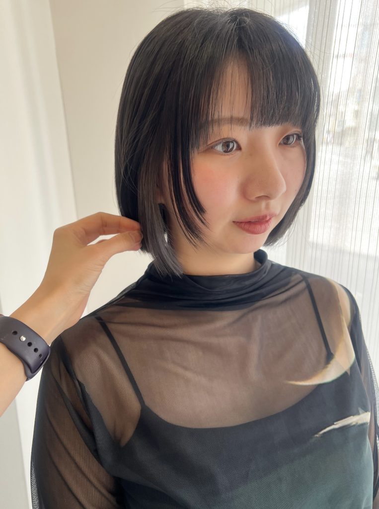 こちらはベースはぱっつんボブですが、