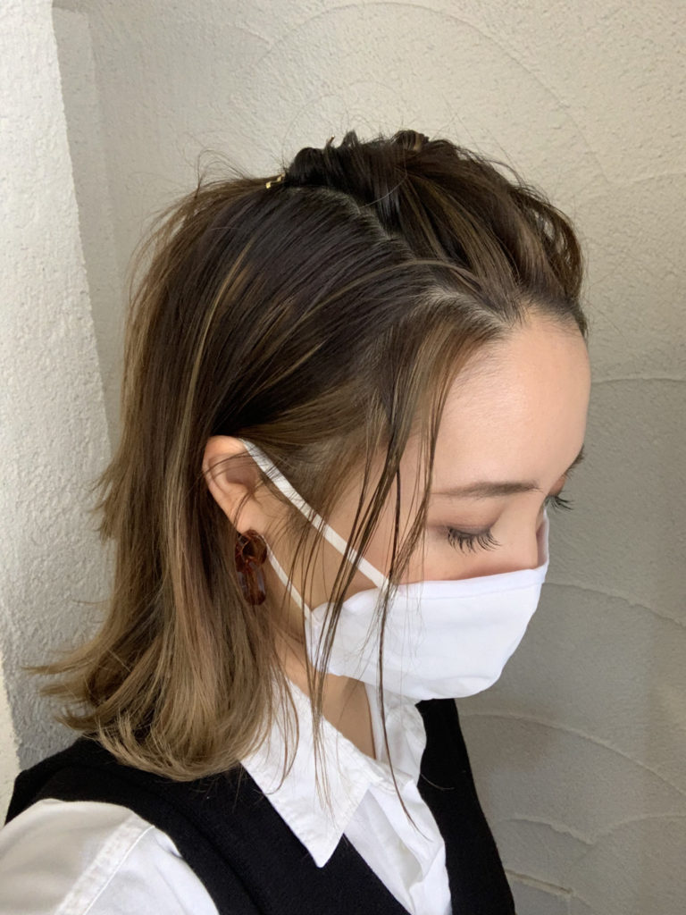 マスクをしていると顔の出る面積が少なくなるので、少し重い印象になりがち。