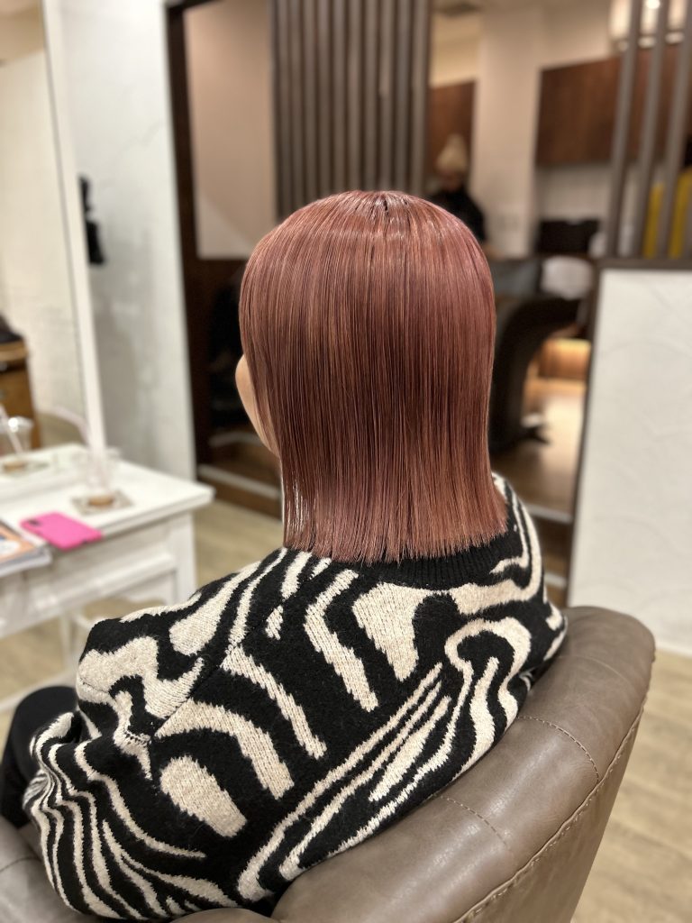元々ブリーチ毛なので薄いピンクとオレンジを重ねると、コーラルピンクになります🙆