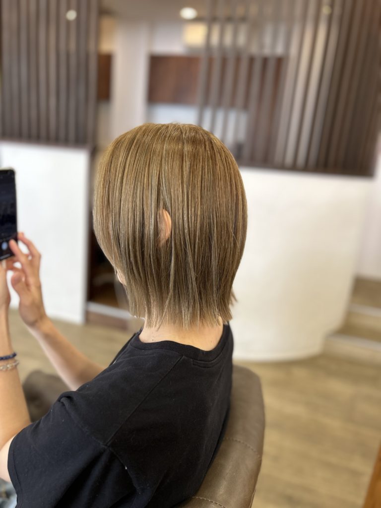そして、こちらのお客様はなんと、ブリーチなしの明るめカラーをコツコツ積み重ねてこちらの透明感を出しています💁♀️