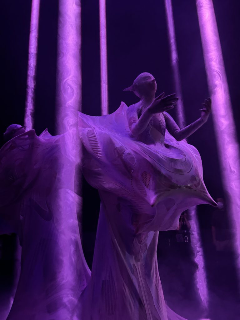 これは石黒 浩がプロデュースするシグネチャーパビリオンの作品のひとつ。1000年後のいのちの姿だそうです。1000年後、、、想像がつきませんよね。とても近い距離でロボットやアンドロイドを見ましたが、リアルです。瞬きや仕草までもがいきている。