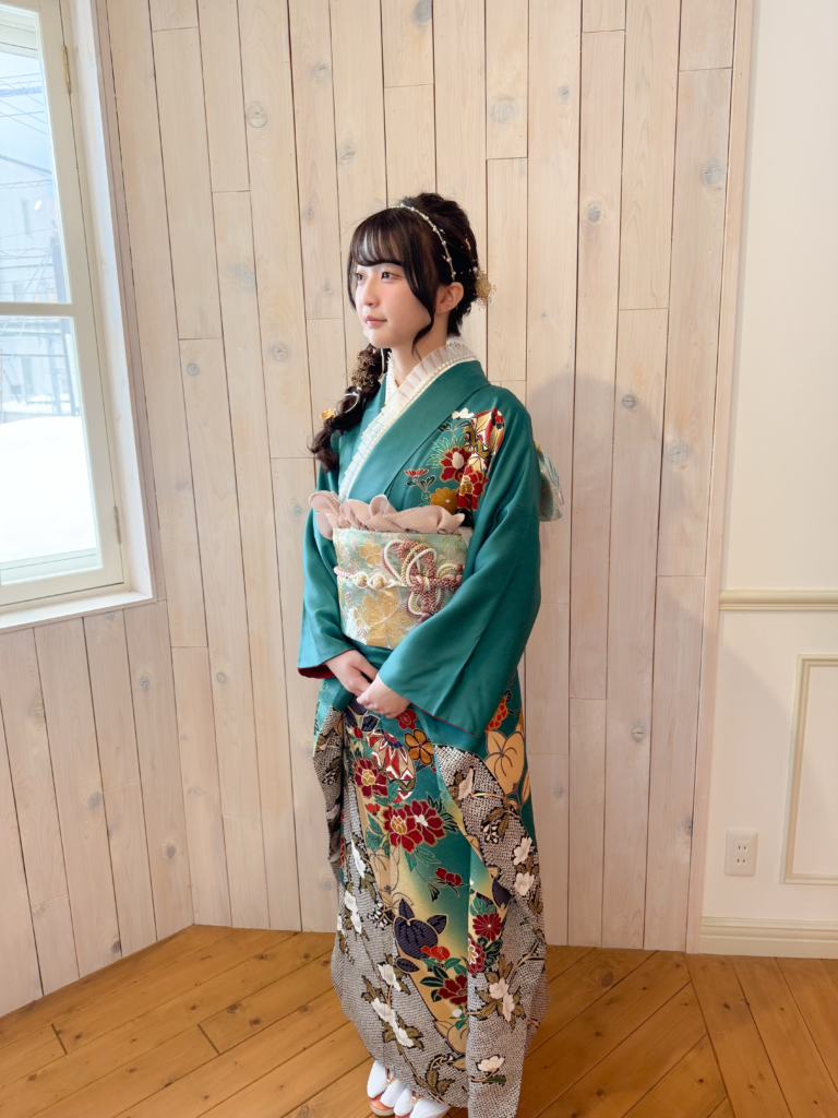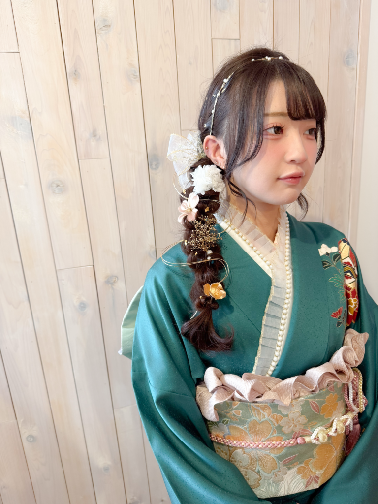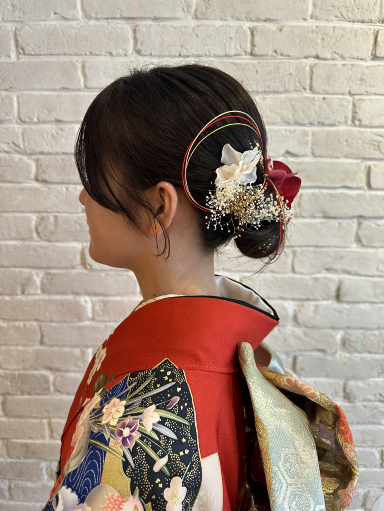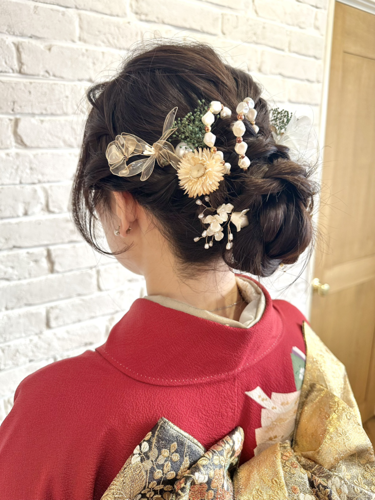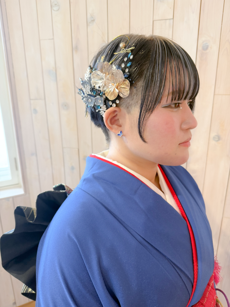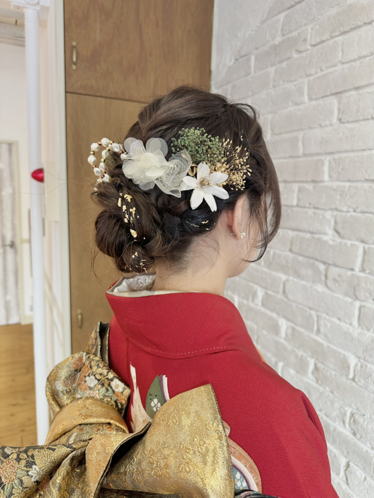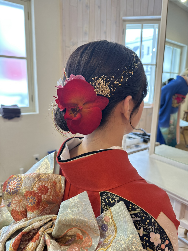 お着物の色合いに合わせたヘアアクセのチョイスも素敵でした!